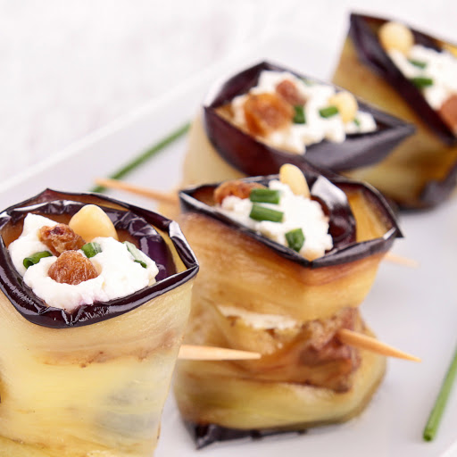 Aubergine rolls (4 pieces) stuffed with ricotta, tomatoes, scallions & nutmeg¥99 JPY