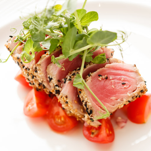 Fresh tuna tataki, sun gold cherry tomatoes & organic greens¥1212 JPY